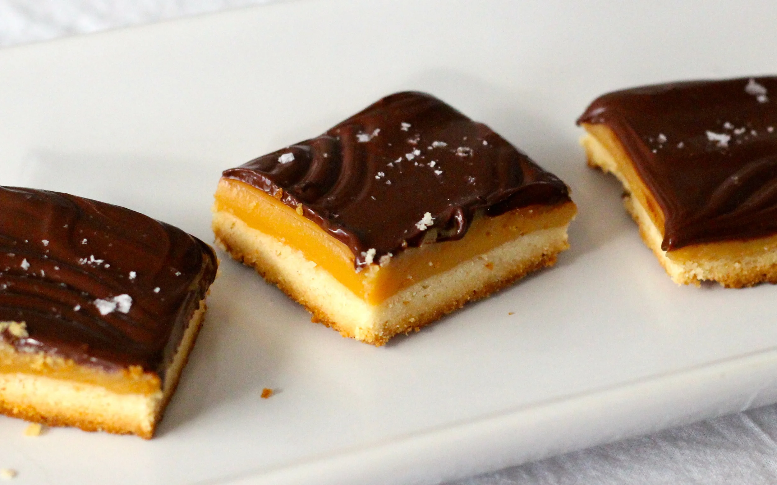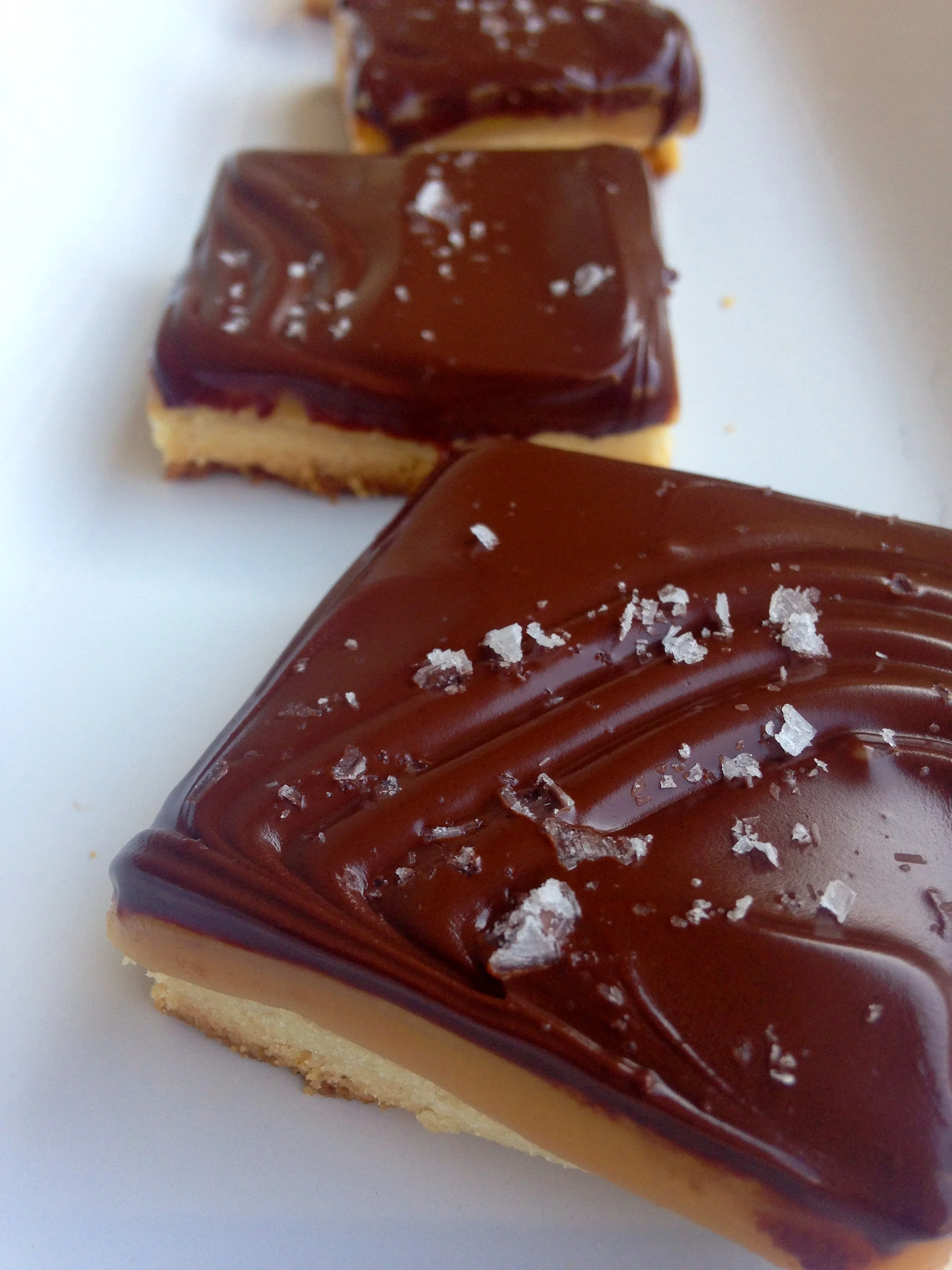 So today I bring you Millionaire's Shortbread. It's basically an even more delicious version of Twix, dressed up with homemade caramel, dark chocolate and a sprinkle of flaky Maldon sea salt. The bars take a bit of time, but they are SO worth it. Even cleaning up is great. So many spoons to lick. Especially when you get to the caramel pot. I use apple slices to scoop out every last creamy bit. I'm nothing if not pragmatic.